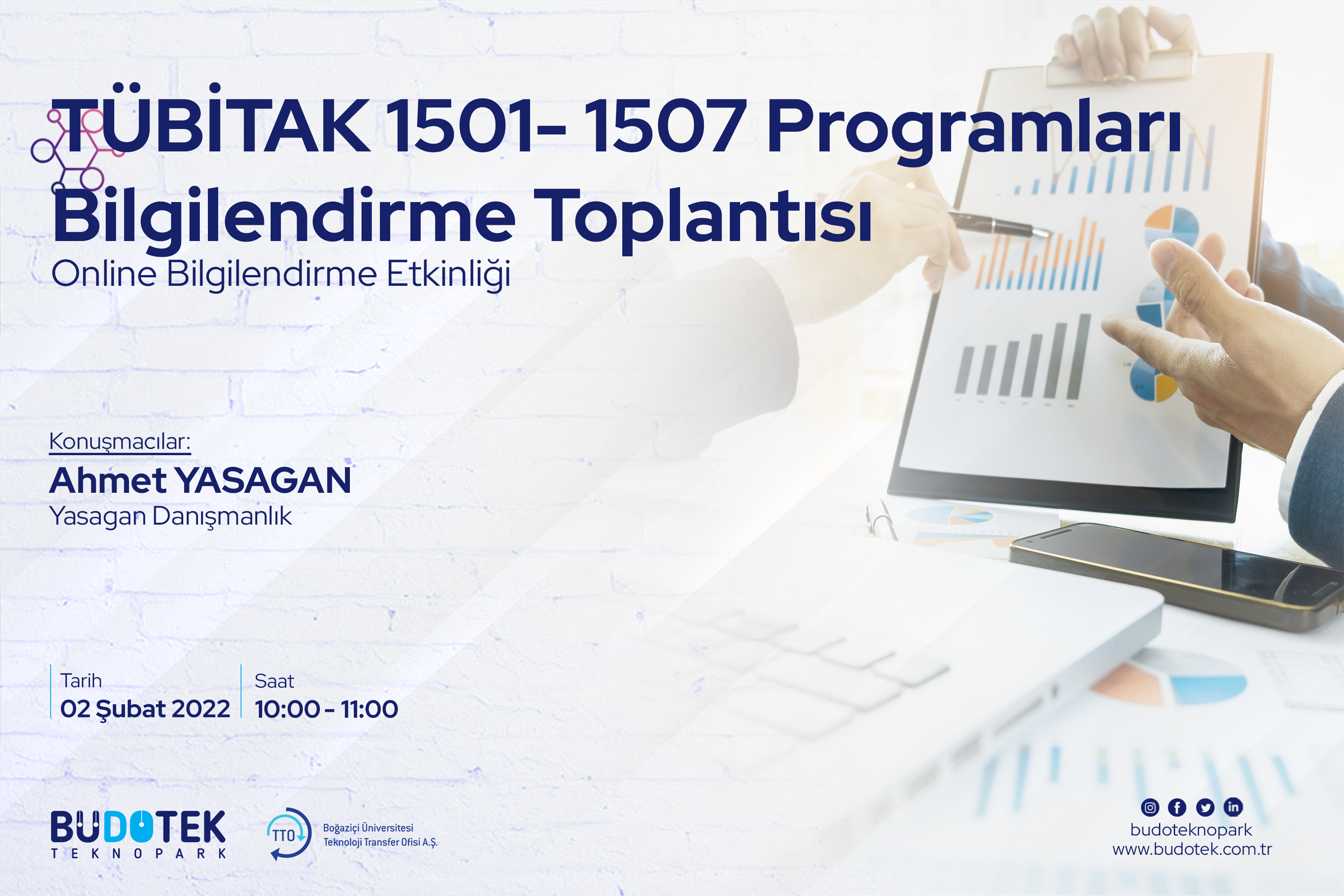 TÜBİTAK 1501 Sanayi Ar-Ge Destek Programı ve 1507 KOBİ Ar-Ge Destek Programı için 2022/1. Çağrı dönemini açmıştır. Sizlerin yararlanabileceğini düşündüğümüz bu çağrının detaylarını paylaşmak üzere Boğaziçi Üniversitesi Teknoloji Transfer Ofisi ile “TÜBİTAK 1501- 1507 Programları Bilgilendirme” çevrimiçi toplantısı düzenlenmiştir. Toplantıda Yasagan Danışmanlık Kurucu Ortağı Ahmet Yasagan çağrılar hakkında bilgilendirme yapacaktır.