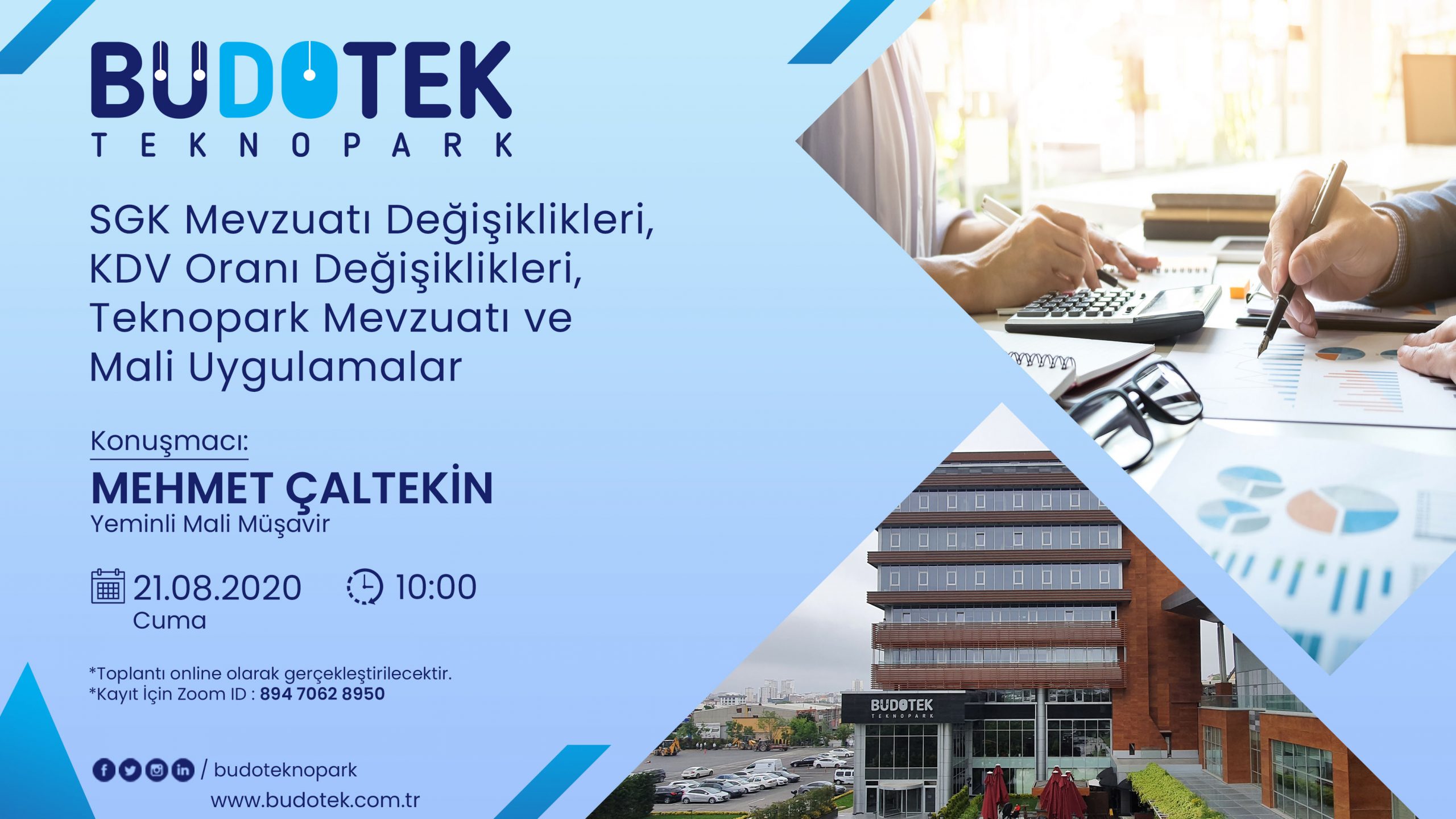 Yeminli Mali Müşavir Mehmet Çaltekin 21 Ağustos 2020 tarihinde 10:00’da SGK Mevzuatı Değişikliği Sonrası Net Ücret Uygulaması ve Değişen KDV Oranları hakkında bilgilendirme yapacak, ayrıca Teknopark Mevzuatı ve Mali Uygulamalar ile ilgili sorularınızı yanıtlayacaktır.