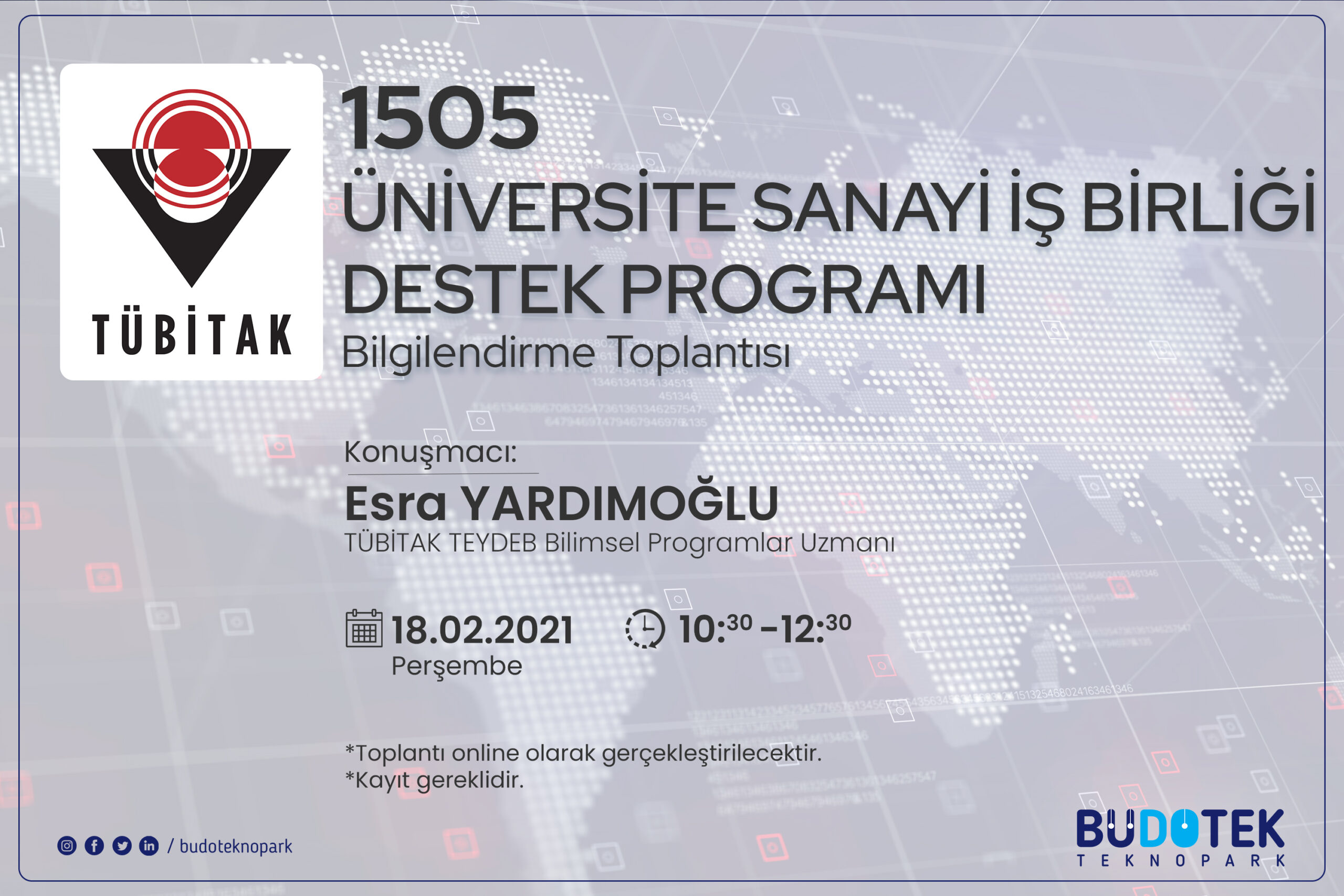 TÜBİTAK TEYDEB Teknoloji Transfer Mekanizmaları Destekleme Grubundan Sayın Esra Yardımoğlu 18 Şubat 2021 tarihinde, 1505 – Üniversite-Sanayi İşbirliği Destek Programı hakkında online bilgilendirme yapacaktır. Toplantı BÜDOTEK firmaları, BÜN Teknopark firmaları, Dudullu OSB firmaları ve Boğaziçi Üniversitesi akademisyenleri için düzenlenmiştir.